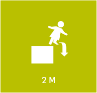 Segundo a EN 16630 não é obrigatória superficie de amortecimento de impacto em equipamento com altura de queda livre menor que 1,5 m, a menos que exista movimento forçado.